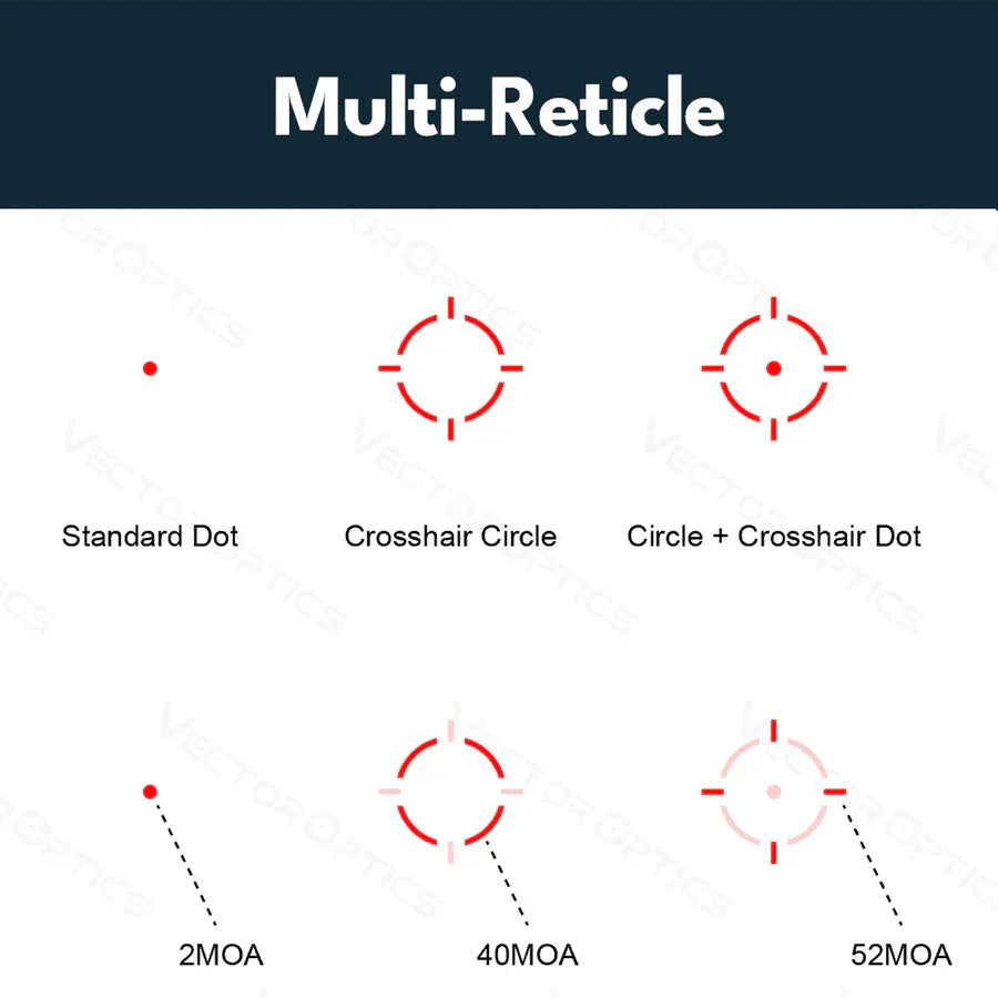 Ponuja tudi tri izbirne križe, senzor gibanja (samodejni izklop po 2 minutah nedejavnosti, ponovno vklopi se takoj, ko se optika premakne) in skupaj deset nastavitev svetlosti (vključno z 2 stopnjama za nočno gledanje).